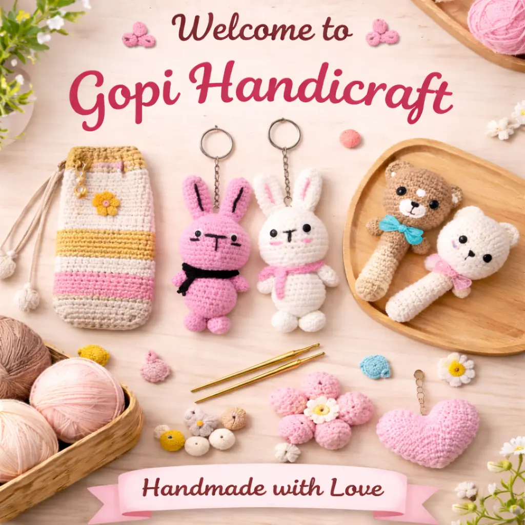 At Gopi Handicraft, we believe that handmade items carry a special charm and uniqueness that machine-made products cannot replicate. Each product is carefully crafted with love, patience, and attention to detail using high-quality yarn and materials.