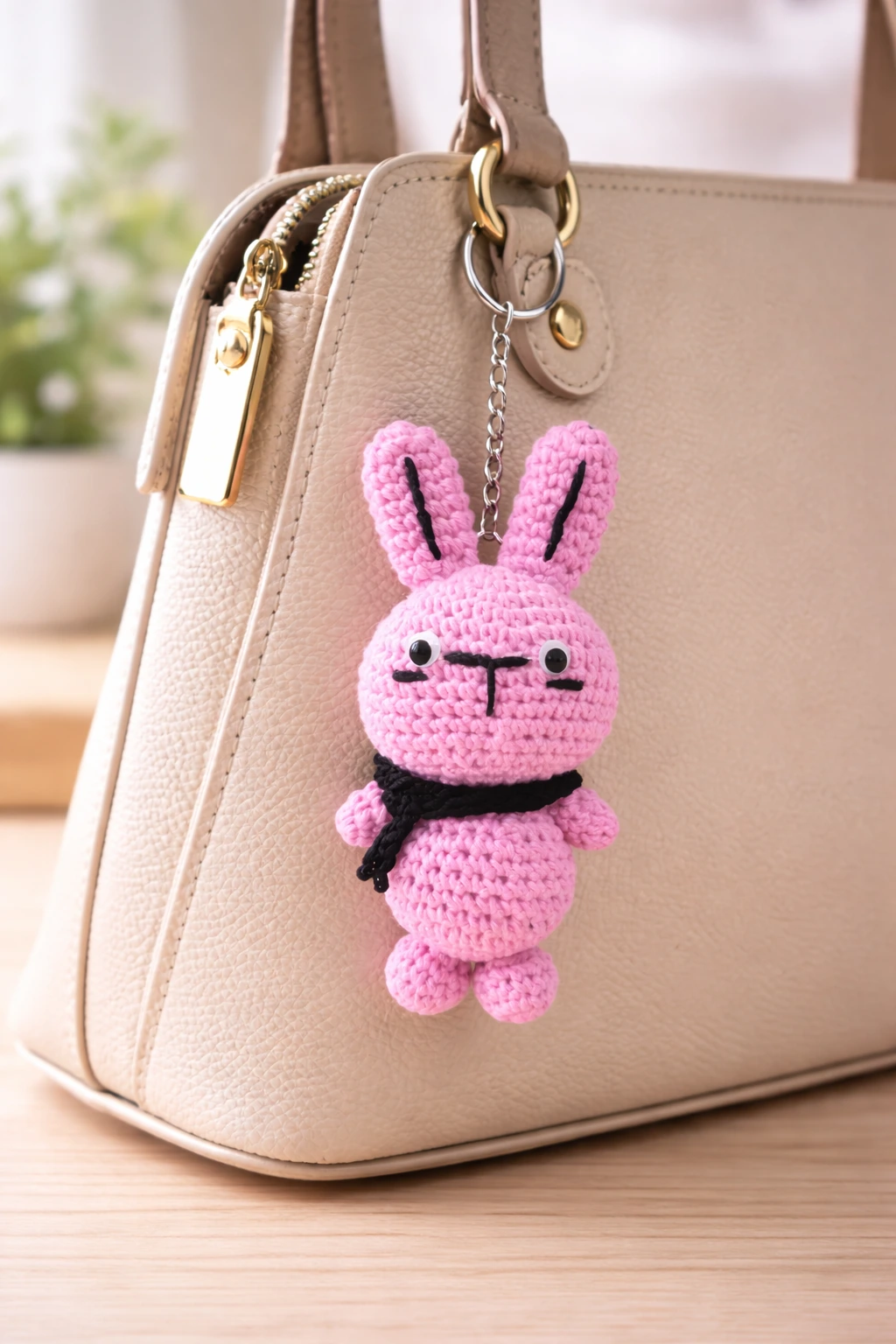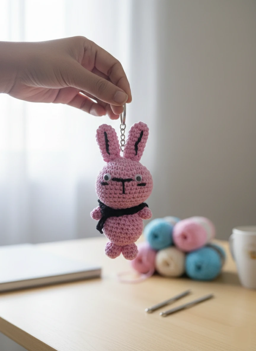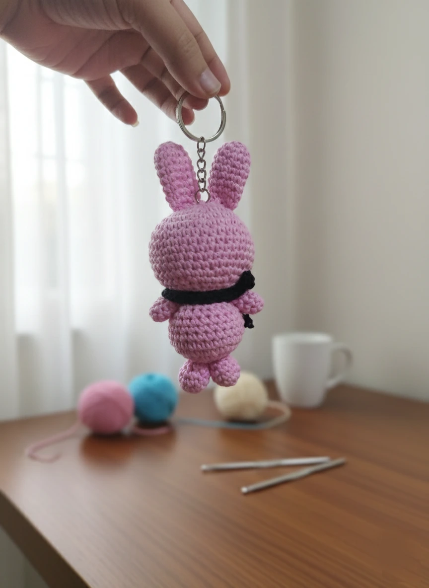 Handmade Crochet Pink Bunny Keychain – Cute Amigurumi Bag & Key Accessory