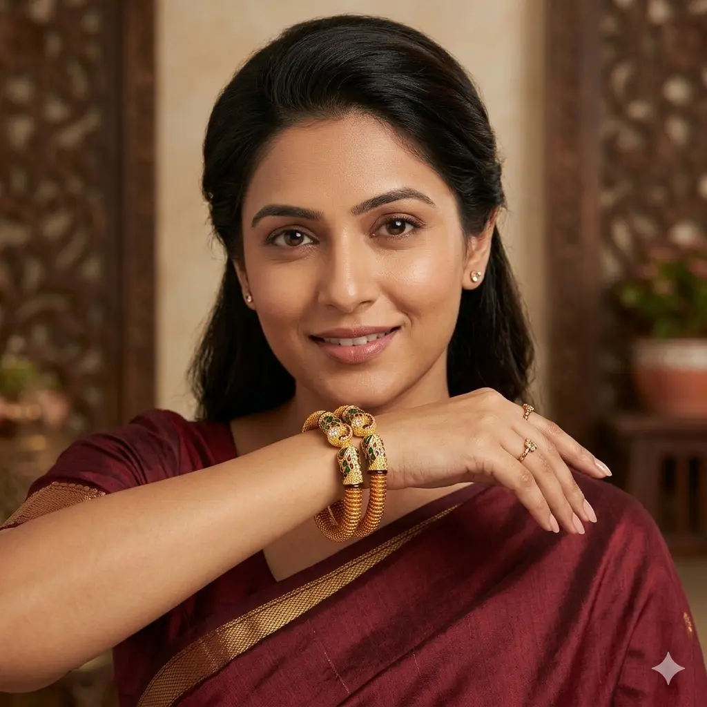 Whether paired with sarees, lehengas, or salwar suits, these bangles perfectly complement traditional Indian attire.